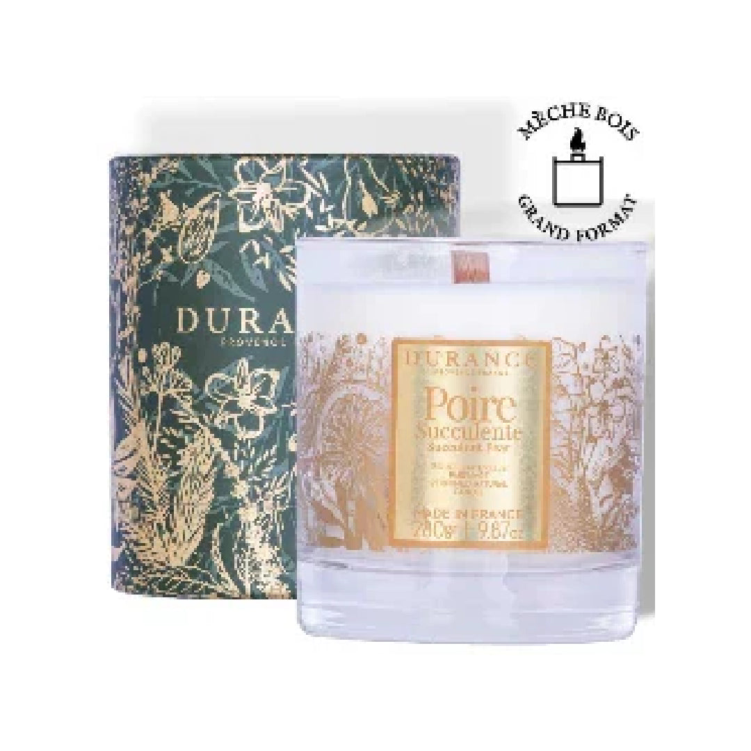 شمعة بفتيل خشبي بنكهة الكمثرى النضرة